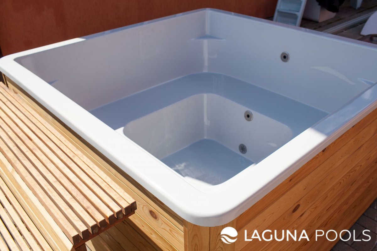 Квадратная гидромассажная ванна с деревянным настилом